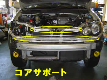 【丸印の部分がコアサポートという部分です。この部品は車を見るとき非常に重要ですので、覚えておいてくださいね】