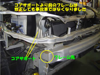 しかし今回の変更で、コアサポートより前にあるフレームの修正は、事故車としては扱わなくなりました。