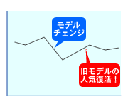 例えば簡単な例としては、新型車へのモデルチェンジがどう影響するか、といったことがあります。